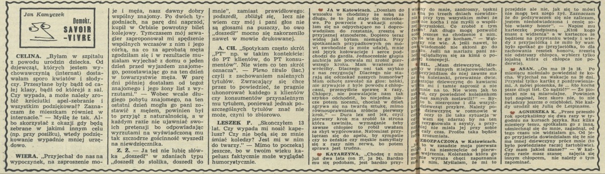 Archiwum / Demokratyczny savoir-vivre nr 1287 (49/1969) 02/19 Podziel się Tytuł Demokratyczny savoir vivre w odcinkach Autor Jan Kamyczek Rubryka Demokratyczny savoir-vivre Artykuł z numeru 1287 (49/1969) Data wydania 7 grudnia 1969 Tagi obyczaje kultura