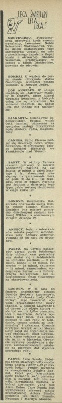 Archiwum / Lecą świetliki nr 964 (39/1963) 81772/121061 Podziel się Tytuł Lecą świetliki, lecą Rubryka Lecą świetliki Artykuł z numeru 964 (39/1963) Data wydania 29 września 1963 Tagi statua Gandhiego Bombaj Picasso księżniczka Małgorzata Jane Fonda