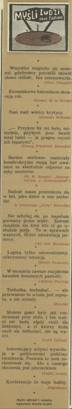Archiwum / Myśli nr 1126 (45/1966) 285/2107 Podziel się Tytuł Myśli ludzi Rubryka Myśli Artykuł z numeru 1126 (45/1966) Data wydania 6 listopada 1966