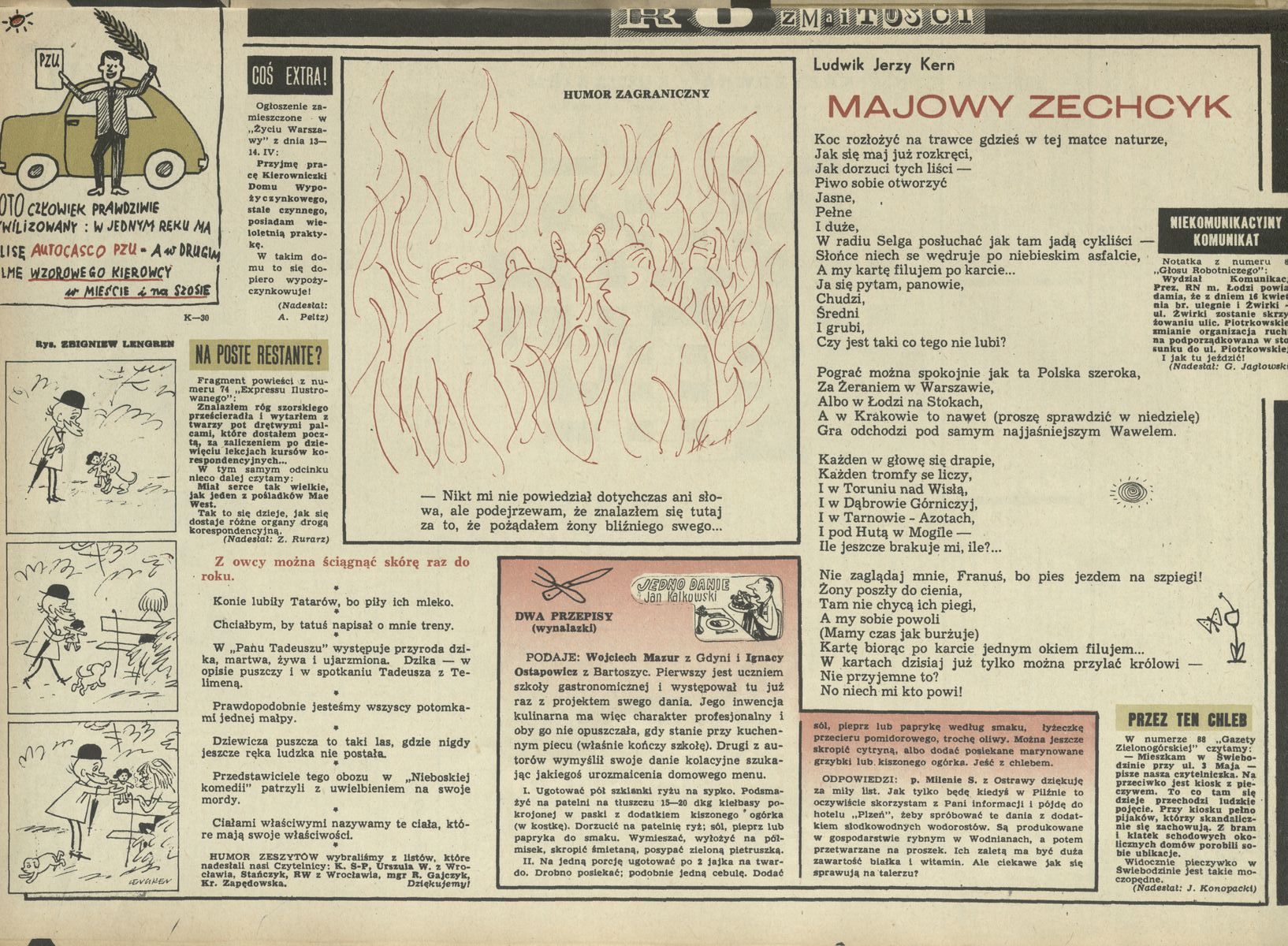 Archiwum / Rozmaitości [old] nr 1256 (18/1969) 51674/123969 Podziel się Tytuł Majowy zechcyk Autor Ludwik Jerzy Kern Rubryka Rozmaitości [old] Artykuł z numeru 1256 (18/1969) Data wydania 4 maja 1969