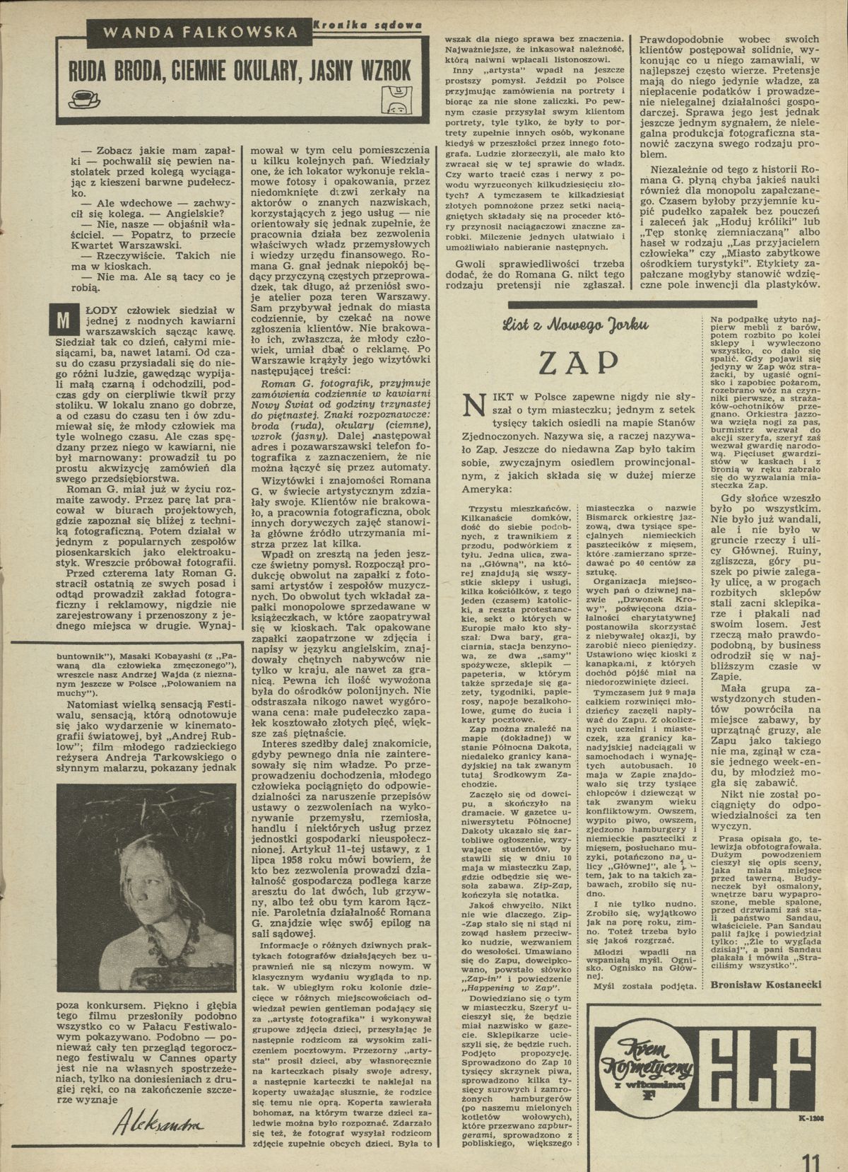 Archiwum / Kronika sądowa nr 1262 (24/1969) 51873/123969 Podziel się Tytuł Ruda broda, ciemne okulary, jasny wzrok Autor Wanda Falkowska Rubryka Kronika sądowa Artykuł z numeru 1262 (24/1969) Data wydania 15 czerwca 1969