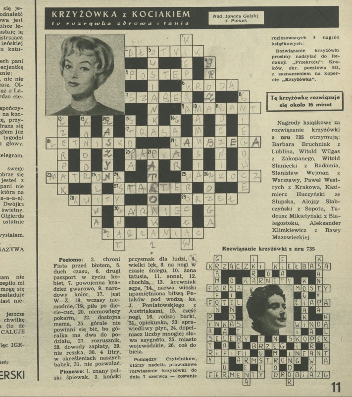 Archiwum / Krzyżówka z kociakiem nr 738 (22/1959) 30177/123969 Podziel się Tytuł krzyzówka z kociakiem Rubryka Krzyżówka z kociakiem Artykuł z numeru 738 (22/1959) Data wydania 31 maja 1959