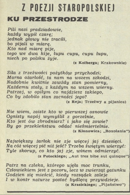 Archiwum / Poezja nr 1395 (01/1972) 01/72 Podziel się Tytuł Z poezji staropolskiej: ku przestrodze Kategoria Poezja Artykuł z numeru 1395 (1/1972) Data wydania 2 stycznia 1972 Tagi Rej Kolberger Klonowic Potocki Krasicki