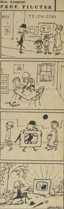 Archiwum / Profesor Filutek nr 688 (24/1958) 18/36 Podziel się Tytuł Prof. Filutek Autor Zbigniew Lengren Rubryka Profesor Filutek Artykuł z numeru 688 (24/1958) Data wydania 15 czerwca 1958 Tagi żart rysunkowy telewizor