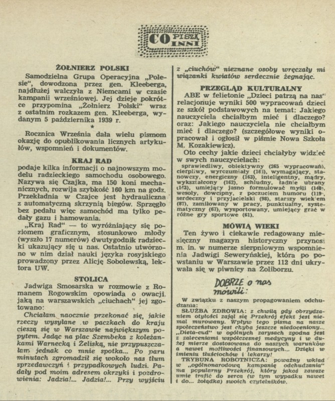 Archiwum / Co piszą inni nr 700 (36/1958) 41/55 Podziel się Tytuł Co piszą inni Rubryka Co piszą inni Artykuł z numeru 700 (36/1958) Data wydania 7 września 1958 Tagi prasa gazety przegląd czasopisma