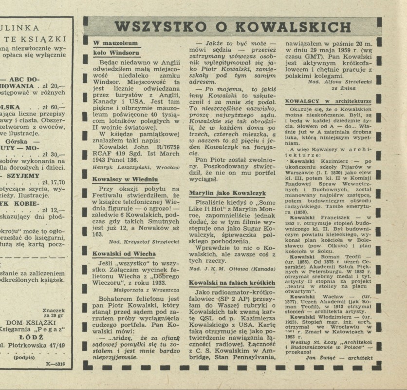 Archiwum / Wszystko o Kowalskich nr 751 (35/1959) 83/123 Podziel się Tytuł Wszystko o Kowalskich Rubryka Wszystko o Kowalskich Artykuł z numeru 751 (35/1959) Data wydania 30 sierpnia 1959