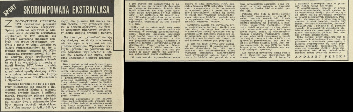 Archiwum / Sport nr 1396 (02/1972) 72/2624 Podziel się Tytuł Skorumpowana ekstraklasa Rubryka Sport Artykuł z numeru 1396 (2/1972) Data wydania 9 stycznia 1972 Tagi ekstraklasa piłka nozna offenbach