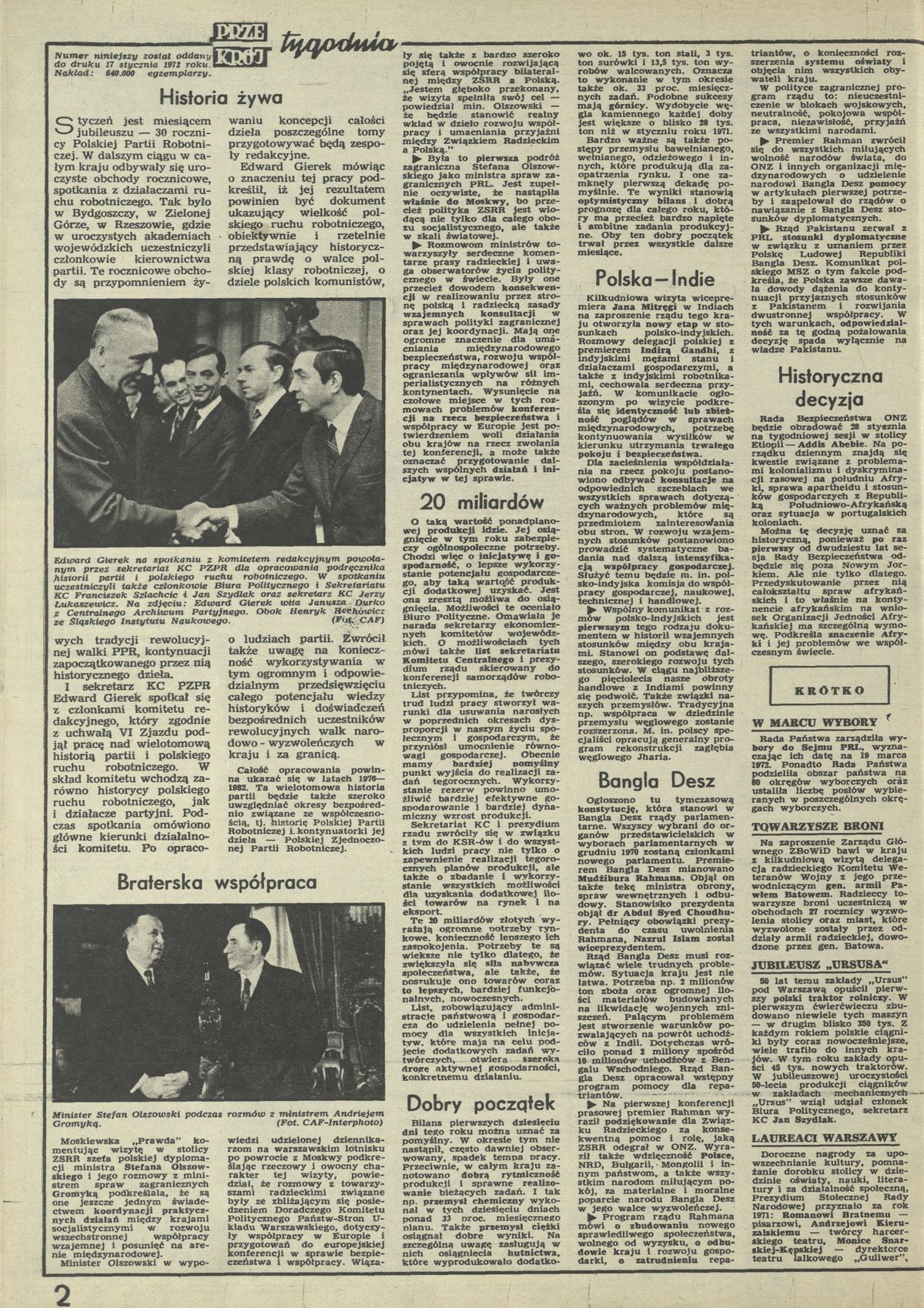 Archiwum / Przekrój tygodnia nr 1398 (04/1972) 20/82 Podziel się Tytuł Przekrój Tygodnia Rubryka Przekrój tygodnia Artykuł z numeru 1398 (4/1972) Data wydania 23 stycznia 1972 Tagi Polska Partia Robotnicza Jan Mitręga Indira Ghandi stefan olszowski