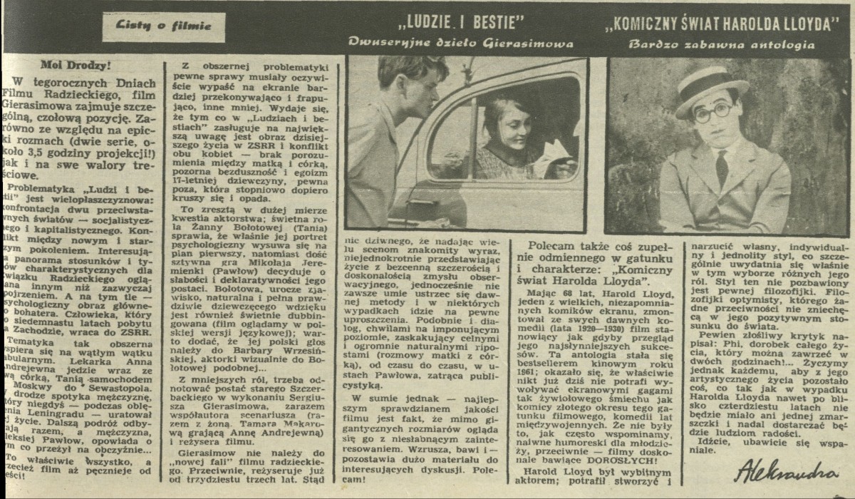 Archiwum / Listy o filmie nr 969 (44/1963) 40696/123969 Podziel się Tytuł Listy o filmie Autor Aleksandra Rubryka Listy o filmie Artykuł z numeru 969 (44/1963) Data wydania 3 listopada 1963 Tagi Dni Filmu Radzieckiego komedia
