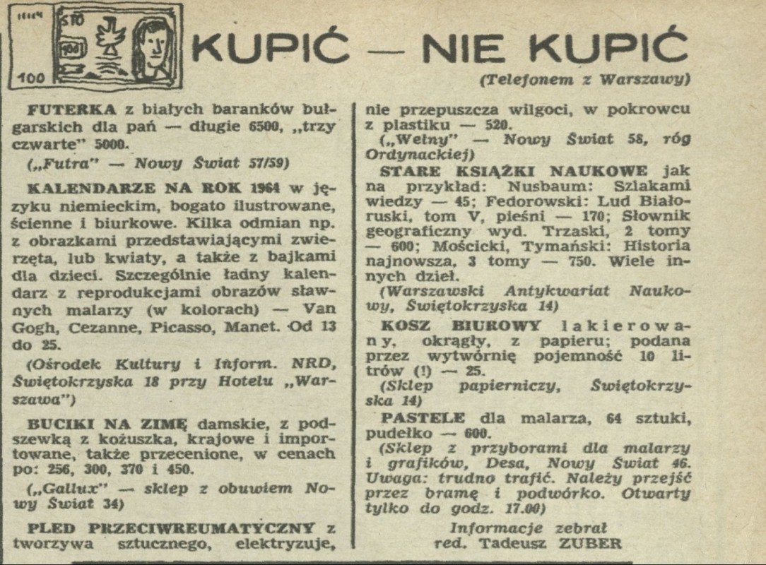 Archiwum / Kupić - nie kupić nr 969 (44/1963) 144/308 Podziel się Tytuł Kupić - nie kupić Autor Tadeusz Zuber Rubryka Kupić - nie kupić Artykuł z numeru 969 (44/1963) Data wydania 3 listopada 1963 Tagi zakupy ceny porady