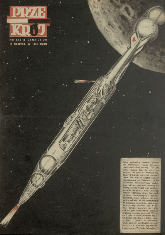 Archiwum / Okładki Przekroju nr 384 (33/1952) 2/3 Podziel się Tytuł Okładka Autor Technika Mołodioży Rubryka Okładki Przekroju Artykuł z numeru 384 (33/1952) Data wydania 17 sierpnia 1952 Tagi prasa ZSRR rakieta kosmiczna podróże międzyplanetarne księżyc