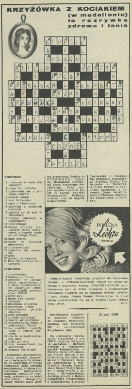 Archiwum / Krzyżówka z kociakiem nr 1401 (07/1972) 56/405 Podziel się Tytuł Krzyżówka z kociakiem Rubryka Krzyżówka z kociakiem Artykuł z numeru 1401 (7/1972) Data wydania 13 lutego 1972 Tagi krzyżówka z kociakiem