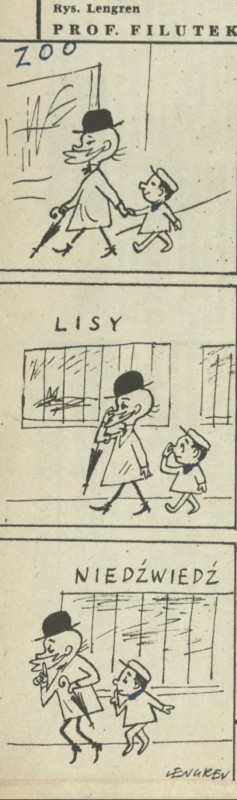 Archiwum / Profesor Filutek nr 720 (04/1959) 05/40 Podziel się Tytuł Prof. Filutek Autor Zbigniew Lengren Rubryka Profesor Filutek Artykuł z numeru 720 (4/1959) Data wydania 25 stycznia 1959 Tagi żart rysunkowy zoo niedźwiedź lis