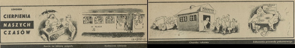 Archiwum / Historyjki obrazkowe nr 18 (18/1945) 1/2 Podziel się Tytuł Cierpienia naszych czasów Autor Zbigniew Lengren Kategoria Historyjki obrazkowe Artykuł z numeru 18 (18/1945) Data wydania 12 sierpnia 1945