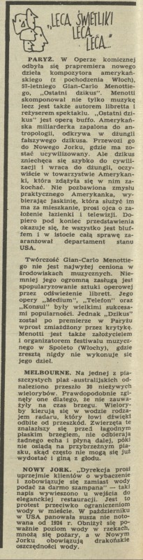 Archiwum / Lecą świetliki nr 972 (47/1963) 207/2263 Podziel się Tytuł Lecą świetliki, lecą Rubryka Lecą świetliki Artykuł z numeru 972 (47/1963) Data wydania 24 listopada 1963 Tagi śmierć wielorybów Melbourne Nowy Jork susza