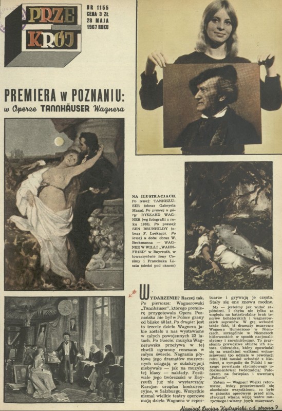 Archiwum / Okładki Przekroju nr 1155 (22/1967) 03/39 Podziel się Tytuł Premiera w Poznaniu: w Operze Tannhäuser Wagnera Autor Lucjan Kydryński Rubryka Okładki Przekroju Artykuł z numeru 1155 (22/1967) Data wydania 28 maja 1967 Tagi Opera Poznańska Tannhäuser Wagner