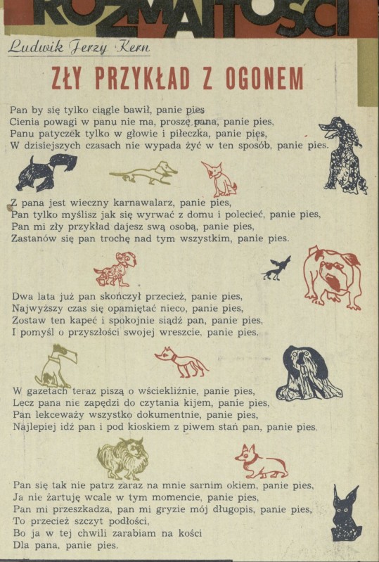 Archiwum / Poezja nr 1403 (09/1972) 18/97 Podziel się Tytuł Zły przykład z ogonem Autor Ludwik Jerzy Kern Kategoria Poezja Artykuł z numeru 1403 (9/1972) Data wydania 27 lutego 1972 Tagi Ludwik Jerzy Kern poezja