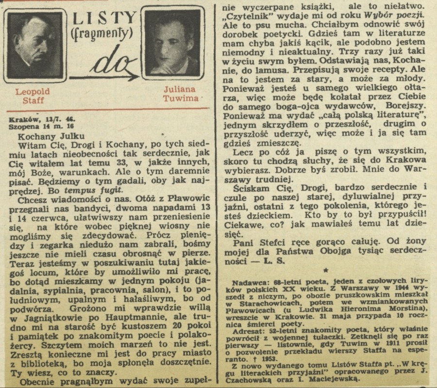 Archiwum / Listy sławnych ludzi nr 1155 (22/1967) 48215/123969 Podziel się Tytuł Listy (fragmenty) Rubryka Listy sławnych ludzi Artykuł z numeru 1155 (22/1967) Data wydania 28 maja 1967 Tagi Leopold Staff Julian Tuwim