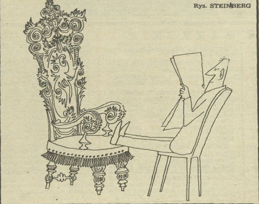 Archiwum / Historyjki obrazkowe nr 1195 (09/1968) 22/113 Podziel się Tytuł Fotel Autor Saul Steinberg Kategoria Historyjki obrazkowe Artykuł z numeru 1195 (9/1968) Data wydania 3 marca 1968 Tagi żart rysunkowy krzesło