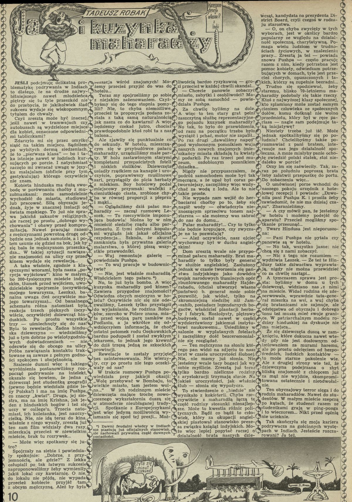 Archiwum / korespondencja własna "Przekroju" nr 974 (49/1963) 1/1 Podziel się Tytuł Ja i kuzynka maharadży Autor Tadeusz Robak Rubryka korespondencja własna "Przekroju" Artykuł z numeru 974 (49/1963) Data wydania 8 grudnia 1963 Tagi korespondencja Indie kobiety