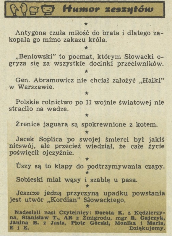 Archiwum / Humor zeszytów szkolnych nr 1161 (28/1967) 48449/123969 Podziel się Tytuł Humor zeszytów Rubryka Humor zeszytów szkolnych Artykuł z numeru 1161 (28/1967) Data wydania 9 lipca 1967
