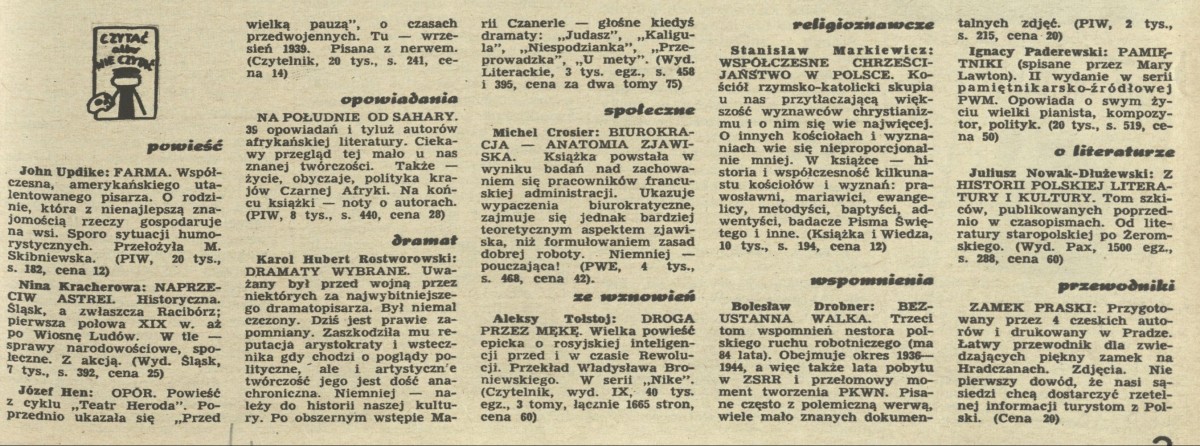 Archiwum / Czytać albo nie czytać? nr 1168 (35/1967) 1/1 Podziel się Tytuł Czytać albo nie czytać? Rubryka Czytać albo nie czytać? Artykuł z numeru 1168 (35/1967) Data wydania 27 sierpnia 1967 Tagi Karol Hubert Rostworowski: Dramaty wybrane Aleksy Tołstoj: Droga przez mękę