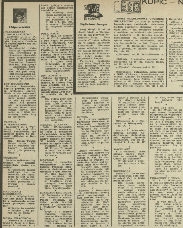 Archiwum / Skrzynka odpowiedzi nr 975 (50/1963) 81295/121061 Podziel się Tytuł Odpowiedzi Rubryka Skrzynka odpowiedzi Artykuł z numeru 975 (50/1963) Data wydania 15 grudnia 1963 Tagi odpowiedzi na pytania czytelników różności