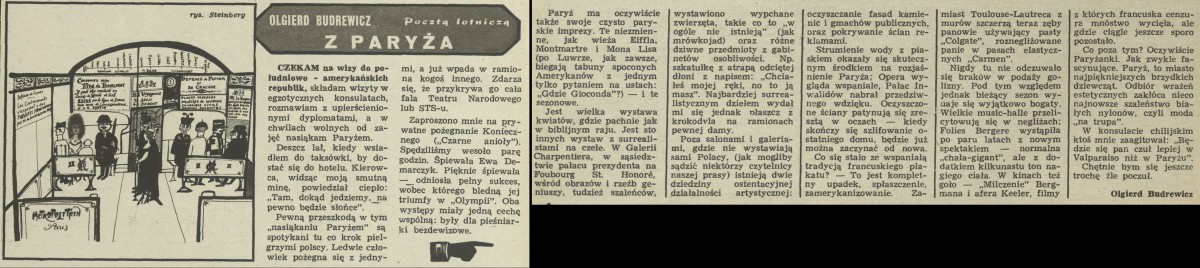 Archiwum / korespondencja własna "Przekroju" nr 998 (21/1964) 10/19 Podziel się Tytuł Pocztą lotniczą: z Paryża Autor Olgierd Budrewicz Rubryka korespondencja własna "Przekroju" Artykuł z numeru 998 (21/1964) Data wydania 24 maja 1964