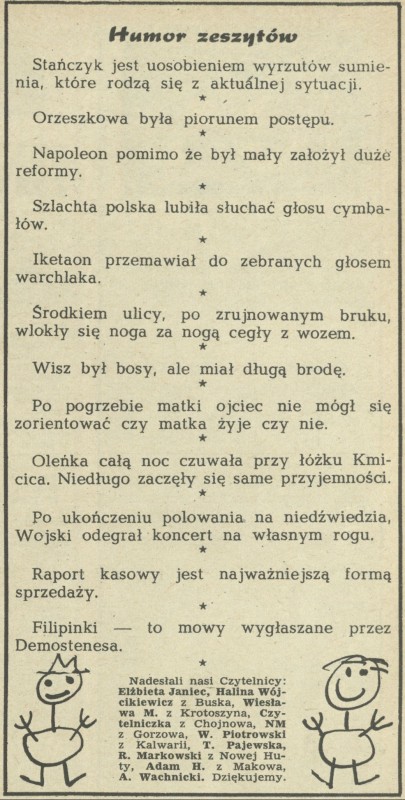 Archiwum / Humor zeszytów szkolnych nr 1012 (35/1964) 42505/123969 Podziel się Tytuł Humor zeszytów Rubryka Humor zeszytów szkolnych Artykuł z numeru 1012 (35/1964) Data wydania 30 sierpnia 1964