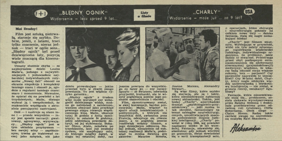 Archiwum / Listy o filmie nr 1407 (13/1972) 56/228 Podziel się Tytuł Listy o filmie Autor Aleksandra Rubryka Listy o filmie Artykuł z numeru 1407 (13/1972) Data wydania 26 marca 1972 Tagi błędny ognik charly Ravi Shankar