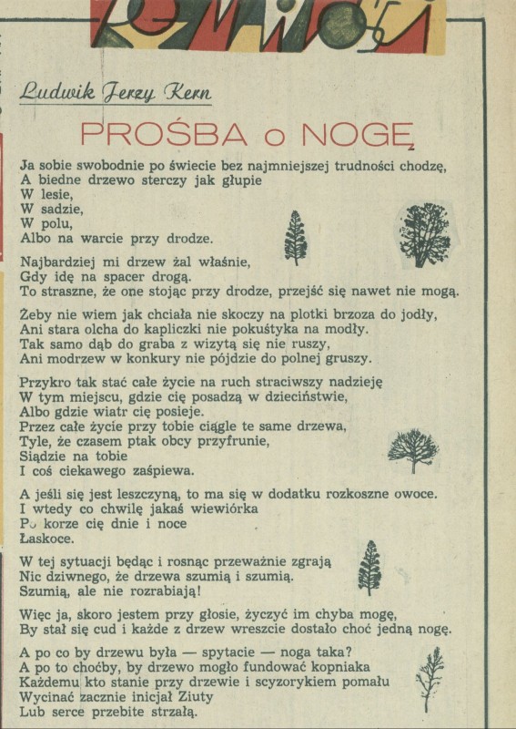 Archiwum / Poezja nr 1407 (13/1972) 25/97 Podziel się Tytuł Prośba o nogę Autor Ludwik Jerzy Kern Kategoria Poezja Artykuł z numeru 1407 (13/1972) Data wydania 26 marca 1972 Tagi Ludwik Jerzy Kern poezja