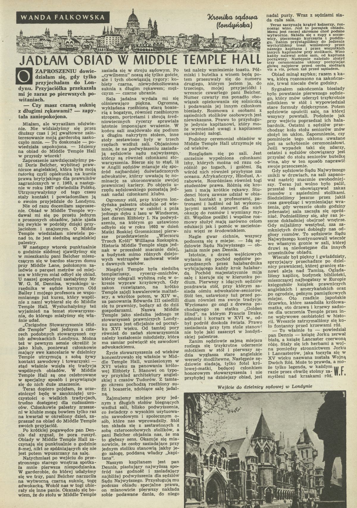 Archiwum / korespondencja własna "Przekroju" nr 1272 (34/1969) 19/452 Podziel się Tytuł Jadłam obiad w Middle Temple Hall Autor Wanda Falkowska Rubryka korespondencja własna "Przekroju" Artykuł z numeru 1272 (34/1969) Data wydania 24 sierpnia 1969