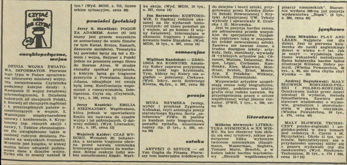 Archiwum / Czytać albo nie czytać? nr 935 (10/1963) 38/47 Podziel się Tytuł Czytać albo nie czytać Rubryka Czytać albo nie czytać? Artykuł z numeru 935 (10/1963) Data wydania 10 marca 1963 Tagi poezja starożytnego Rzymu encyklopedia sztuka