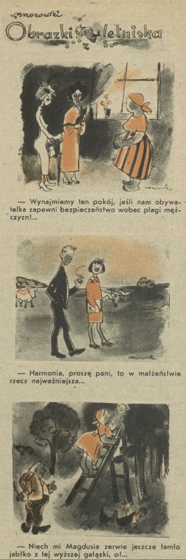 Archiwum / Historyjki obrazkowe nr 22 (22/1945) 441/123969 Podziel się Tytuł Obrazki z letniska Autor Stanisław Brzozowski Kategoria Historyjki obrazkowe Artykuł z numeru 22 (22/1945) Data wydania 9 września 1945 Tagi żart rysunkowy mężczyźni harmonia małżeństwo jabłko drabina