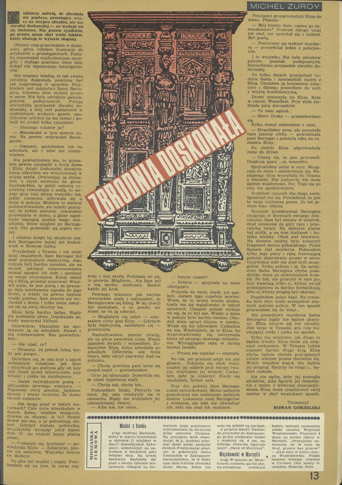 Archiwum / Opowiadanie nr 1409 (15/1972) 1/1 Podziel się Tytuł Zbrodnia doskonała Autor Michel Zuroy Kategoria Opowiadanie Artykuł z numeru 1409 (15/1972) Data wydania 9 kwietnia 1972 Tagi zuroy opowiadanie zbrodnia opowiadanie kryminalne