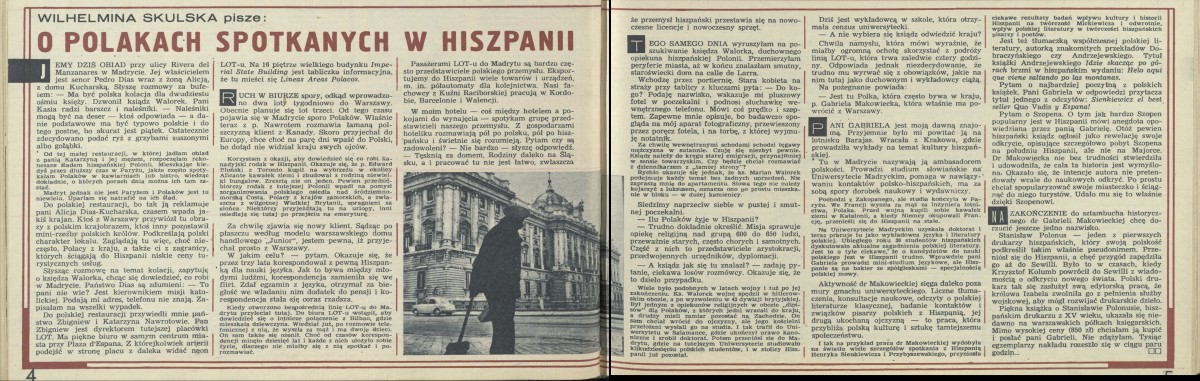 Archiwum / korespondencja własna "Przekroju" nr 1411 (17/1972) 1/1 Podziel się Tytuł O Polakach spotkanych w Hiszpanii Autor Skulska Wilelmina Rubryka korespondencja własna "Przekroju" Artykuł z numeru 1411 (17/1972) Data wydania 23 kwietnia 1972 Tagi Hiszpania Madryt Junior