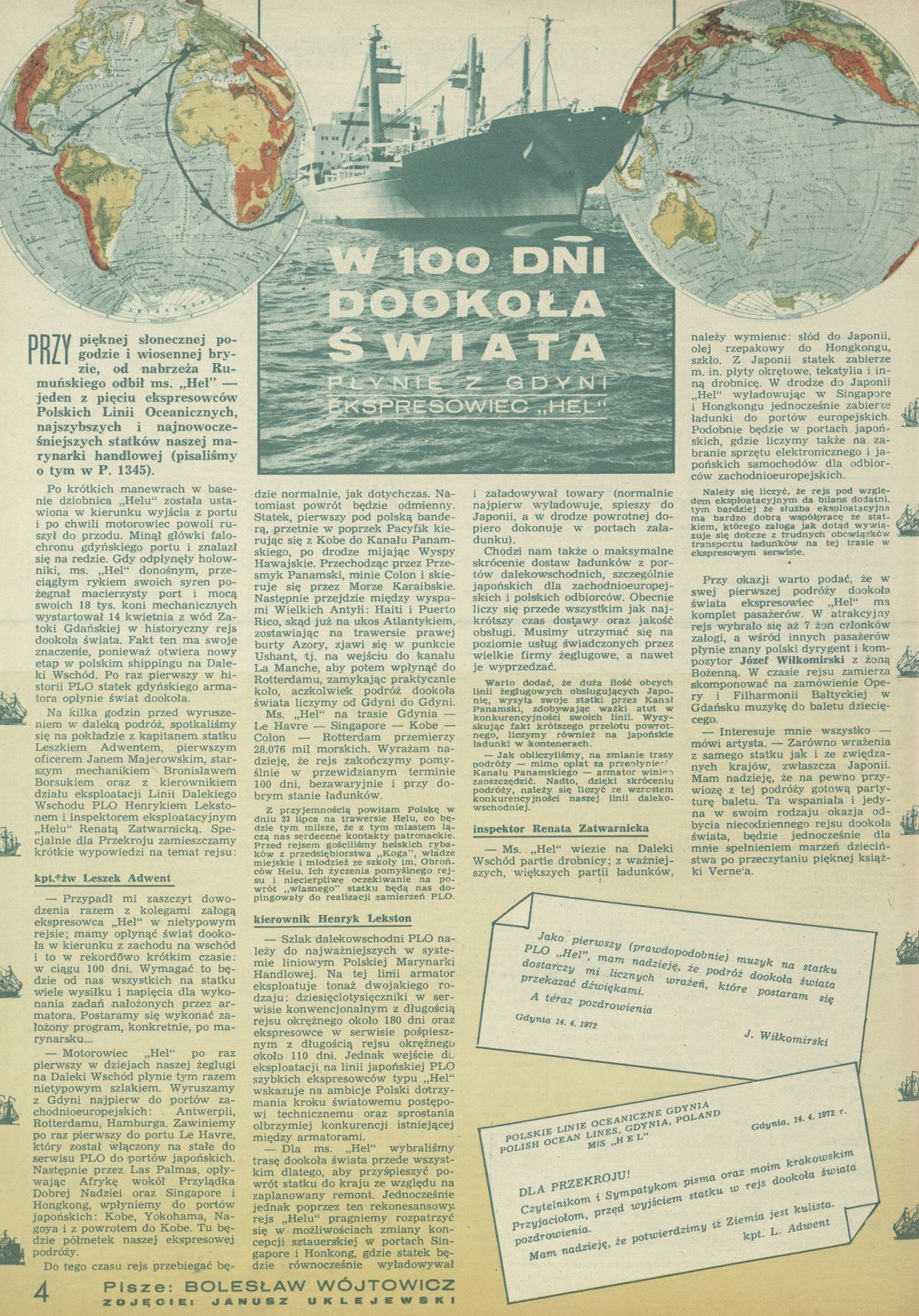 Archiwum / korespondencja własna "Przekroju" nr 1412 (18/1972) 26/76 Podziel się Tytuł W 100 dni dookoła świata Autor Bolesław Wojtowicz Rubryka korespondencja własna "Przekroju" Artykuł z numeru 1412 (18/1972) Data wydania 30 kwietnia 1972 Tagi Gdynia ekspresowiec "Hel" PLO Polskie Linie Oceaniczne
