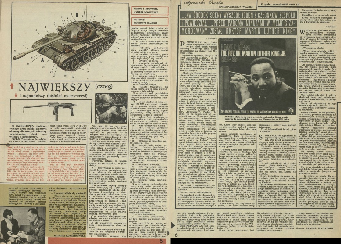 Archiwum / Społeczeństwo nr 1204 (18/1968) 04/17 Podziel się Tytuł Największy (czołg) i najmniejszy (pistolet maszynowy)! Autor Janusz Magnuski Kategoria Społeczeństwo Artykuł z numeru 1204 (18/1968) Data wydania 5 maja 1968 Tagi wojsko