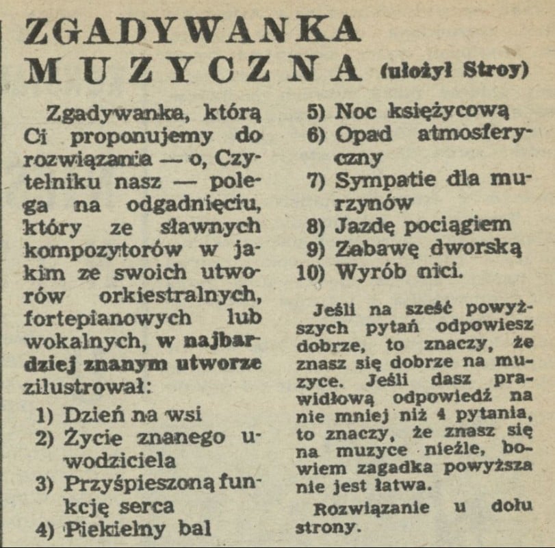 Archiwum / Zgadywanki Przekroju nr 255 (09/1950) 15/646 Podziel się Tytuł Zgadywanka muzyczna Autor Stroy Rubryka Zgadywanki Przekroju Artykuł z numeru 255 (9/1950) Data wydania 26 lutego 1950 Tagi zagadka zgadywanka łamigłówka
