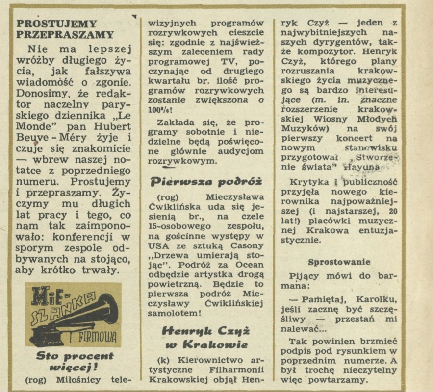 Archiwum / Mieszanka firmowa nr 1034 (05/1965) 43399/123969 Podziel się Tytuł Mieszanka firmowa Rubryka Mieszanka firmowa Artykuł z numeru 1034 (5/1965) Data wydania 31 stycznia 1965 Tagi Ćwiklińska Czyż