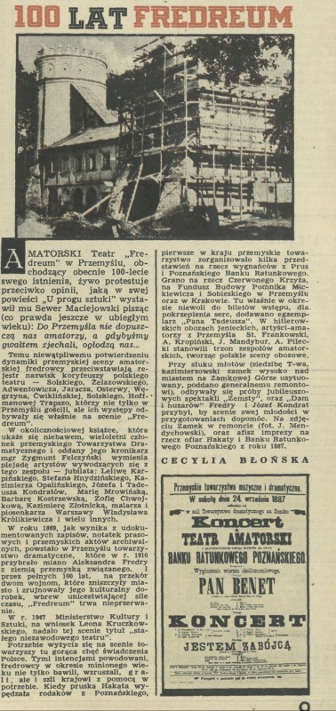 Archiwum / Teatr nr 1286 (48/1969) 52704/123969 Podziel się Tytuł 100 lat Fredreum Autor Cecylia Błońska Rubryka Teatr Artykuł z numeru 1286 (48/1969) Data wydania 30 listopada 1969