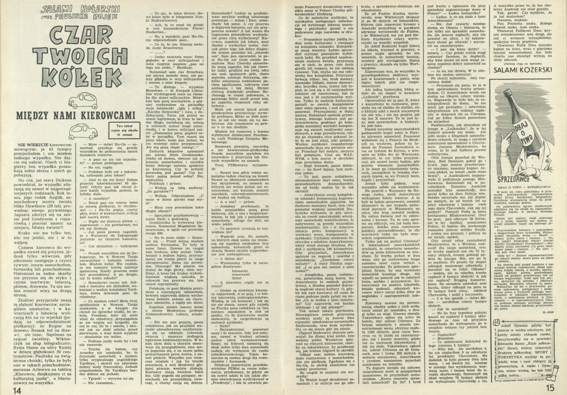 Archiwum / Czar Twoich kółek nr 740 (24/1959) 30280/123969 Podziel się Tytuł Czar twoich kółek Autor Paulina Rojek Rubryka Czar Twoich kółek Artykuł z numeru 740 (24/1959) Data wydania 14 czerwca 1959 Tagi motoryzacja samochody