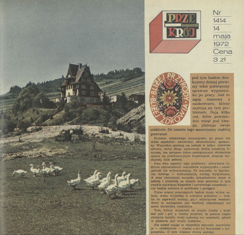 Archiwum / Okładki Przekroju nr 1414 (20/1972) 1505/2969 Podziel się Tytuł Bliżej przyrody Rubryka Okładki Przekroju Artykuł z numeru 1414 (20/1972) Data wydania 14 maja 1972 Tagi przyroda natura