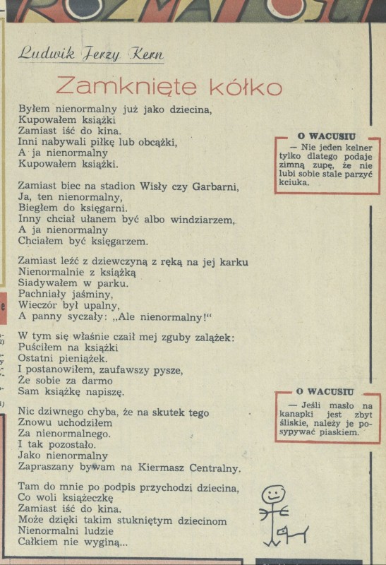 Archiwum / Rozmaitości [old] nr 1414 (20/1972) 37/56 Podziel się Tytuł Zamknięte kółko Autor Ludwik Jerzy Kern Rubryka Rozmaitości [old] Artykuł z numeru 1414 (20/1972) Data wydania 14 maja 1972 Tagi Ludwik Jerzy Kern poezja