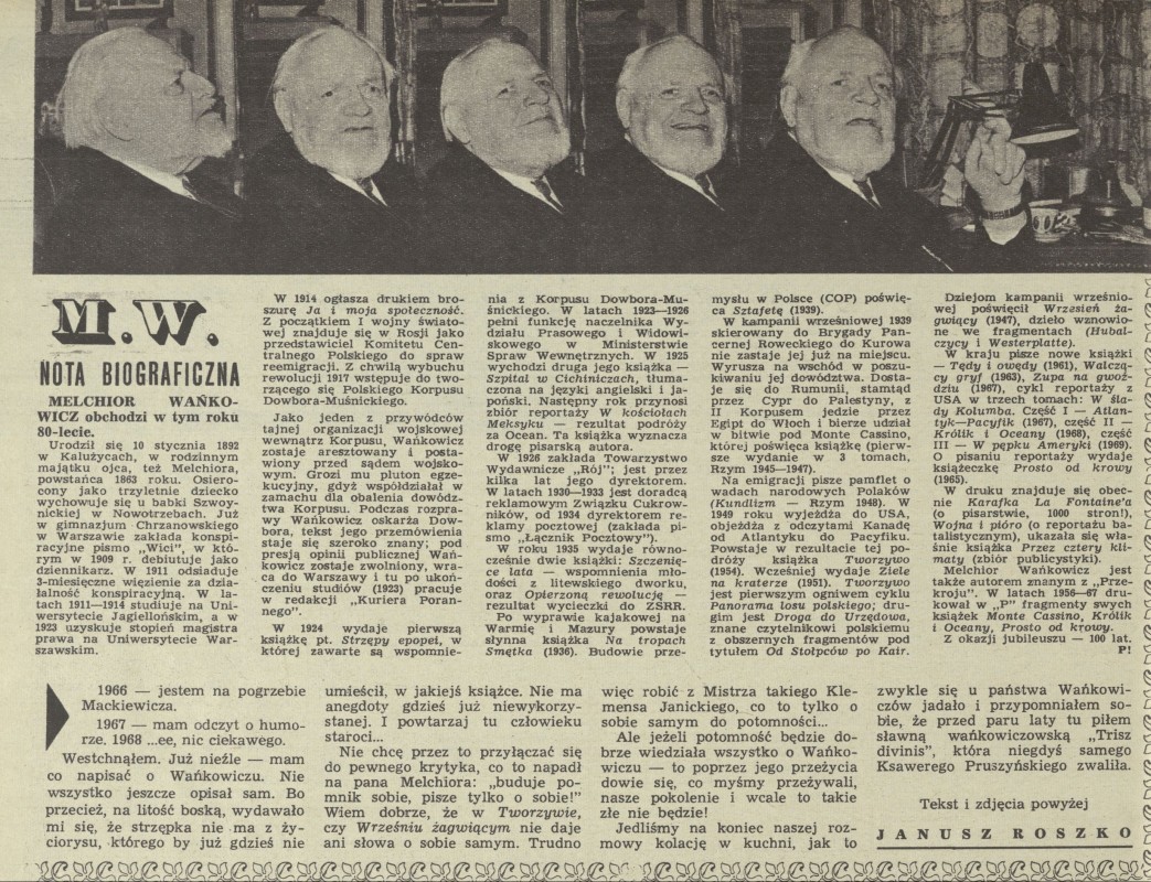 Archiwum / Komentarz nr 1415 (21/1972) 57615/123969 Podziel się Tytuł M. W. Nota biograficzna Autor P! Kategoria Komentarz Artykuł z numeru 1415 (21/1972) Data wydania 21 maja 1972 Tagi Melchior Wańkowicz Dni Książki Tropy smętka Ziele na kraterze