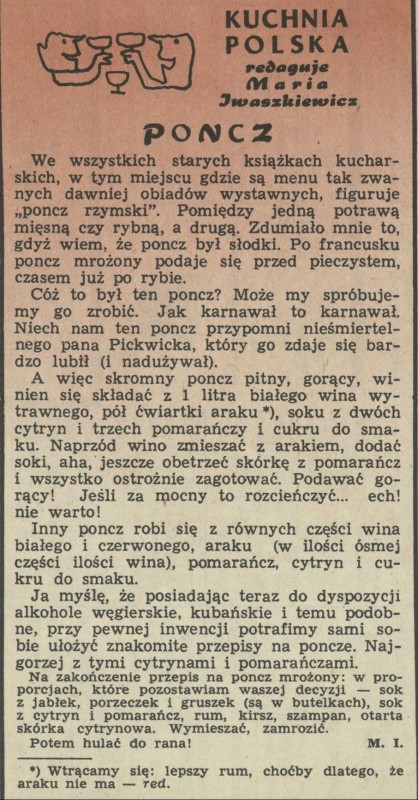 Archiwum / Kuchnia Polska nr 1037 (08/1965) 61/128 Podziel się Tytuł Kuchnia polska Autor Maria Iwaszkiewicz Rubryka Kuchnia Polska Artykuł z numeru 1037 (8/1965) Data wydania 21 lutego 1965 Tagi poncz