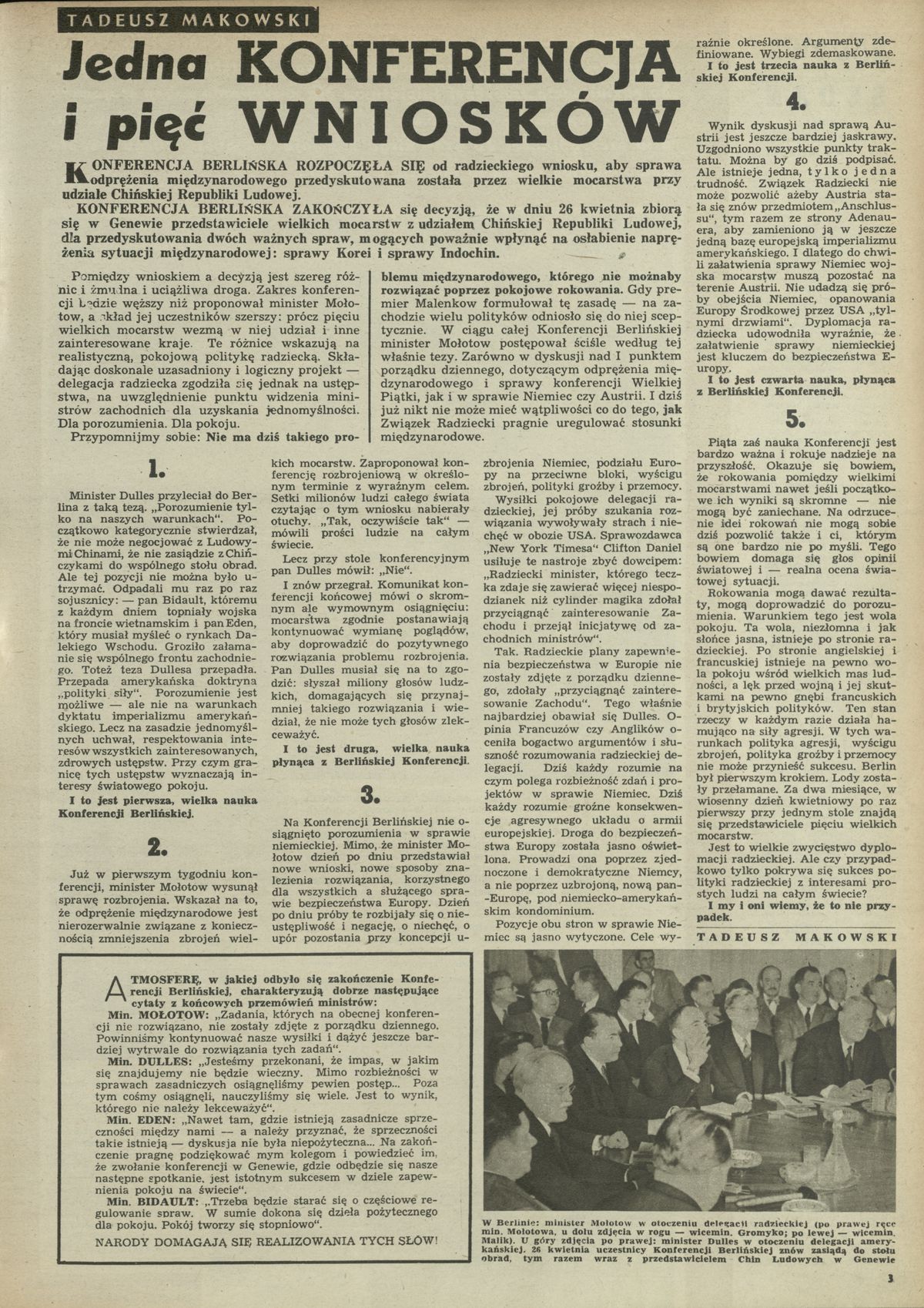 Archiwum / Przekrój tygodnia nr 464 (09/1954) 08/10 Podziel się Tytuł Jedna konferencja i pięć wniosków Autor Tadeusz Makowski Rubryka Przekrój tygodnia Artykuł z numeru 464 (9/1954) Data wydania 28 lutego 1954 Tagi polityka Dulles Mołotow Konferencja Czterech Konferenscja Berlińska