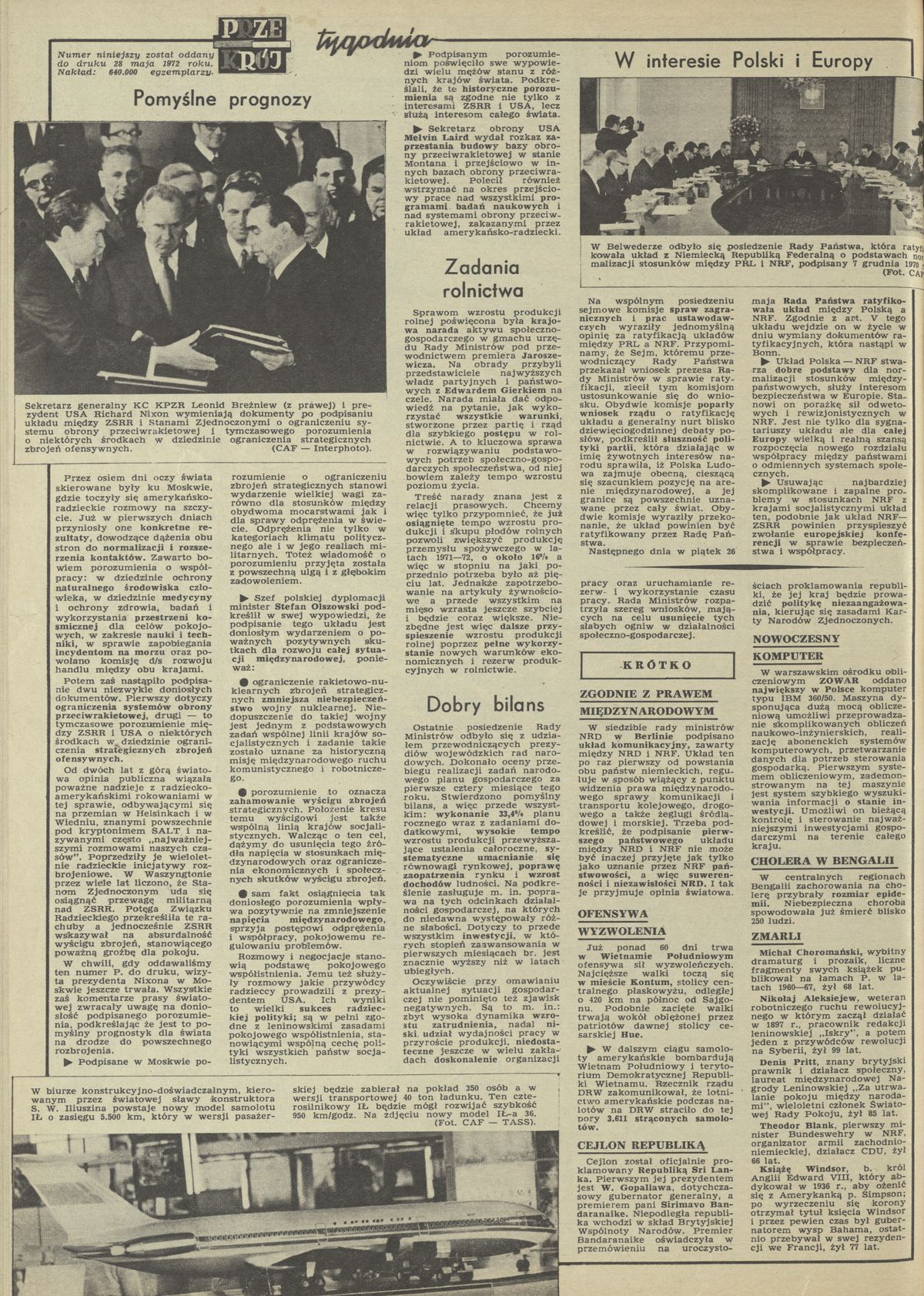 Archiwum / Przekrój tygodnia nr 1417 (23/1972) 11/16 Podziel się Tytuł Przekrój Tygodnia Rubryka Przekrój tygodnia Artykuł z numeru 1417 (23/1972) Data wydania 4 czerwca 1972 Tagi Leonid Breżniew KC PZPR Melvin Laird Edward Gierek