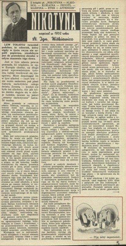 Archiwum / Artykuł nr 1171 (38/1967) 48824/123969 Podziel się Tytuł Nikotyna Autor Ignacy Witkiewicz Kategoria Artykuł Artykuł z numeru 1171 (38/1967) Data wydania 17 września 1967 Tagi nikotyna Tołstoj narkotyki