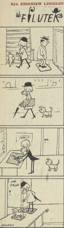 Archiwum / Profesor Filutek nr 1038 (09/1965) 08/40 Podziel się Tytuł Prof. Filutek Autor Zbigniew Lengren Rubryka Profesor Filutek Artykuł z numeru 1038 (9/1965) Data wydania 28 lutego 1965 Tagi żart rysunkowy pies Filuś wycieraczka
